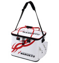 取り外し可能なインナーメッシュカゴを採用したことにより、魚の取り出しがスピーディーに行えます。天面のフタ裏にもマルキユーロゴをプリントしたことで、フタを開けた状態でも見た目を損なうことなく使用できます。エアーポンプを2個セットできるポケットと、竿や玉ノ柄を一時的に立てておくためのロッドホルダーが標準装備となっています。マルキユーオリジナルのカスタムベルト搭載で、別売のロッドスタンドやサイドポーチを取り付けることで機能をさらに追加することができます。ショルダーベルトは防水となっているため、汚れやニオイがつきにくく衛生的です。 |